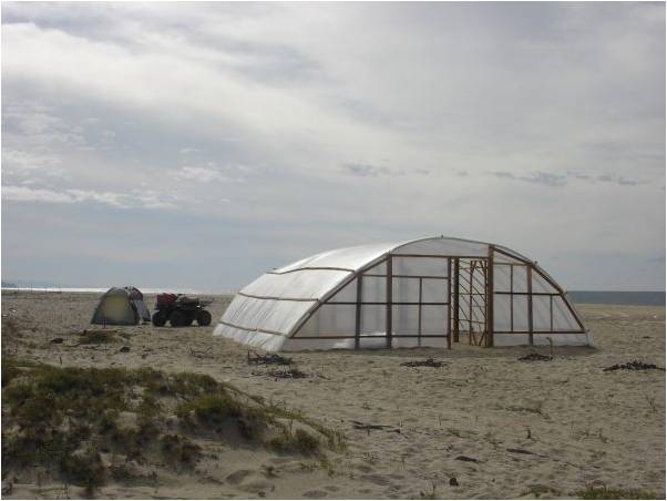 The greenhouse is built with PVC, wood, and greenhouse quality plastic. It elevates the temperature up to six degrees and has proven to produce viable hatchlings similar to those who hatch in warmer climates.