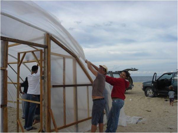 Tortugueros Las Playitas builds a turtle greenhouse every year to incubate the precious Leatherback eggs of Todos Santos. Without the greenhouse, the eggs wouldn’t develop in this region due to low sand temperatures during Leatherback nesting.